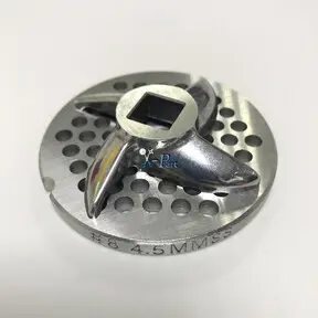 Комплект для мясорубки HAUSMARK | Хаусмарк #8/4,5 Модель: HMG-5015 | Квадрат ножа 10x10mm | Диаметр решётки 62mm, ячейка 4,5mm, центральное отверстие 9mm, толщина 6mm