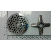 Ножи и решётки для мясорубки GORENJE Суть работы мясорубки такова: в отверстие мясоприемника подаётся продукт, затем шнековый вал подминает и проталкивает мясо к ножу и решётки, которые подобно ножницами смыкаются в ровные углы ножа и решётки, выдают желаемый фарш, будь то паштетный, котлетный или рубленый. Стоит отметить, что решётка выполняет немаловажную в переработке мяса функцию неподвижного ножа. Зачастую заменяют решётку №2 (мясную), диаметр ячейки которой составляет 4-5 мм, т.к. она чаще других используется.