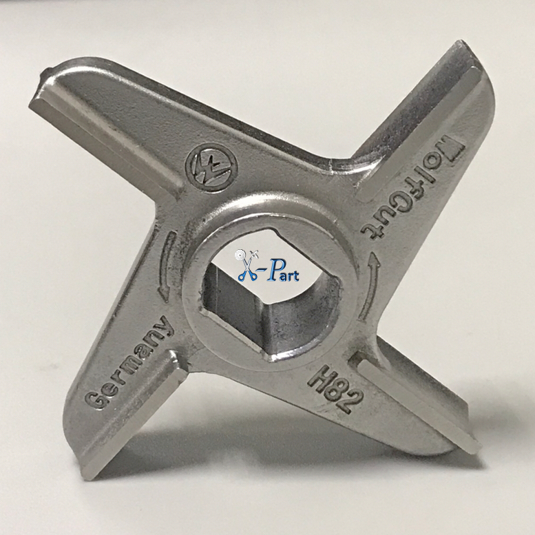 Обратите внимание! При ухудшении качества резки, замена одного крестообразного ножа не сильно улучшает качество выдаваемого продукта. Это обусловленно тем, что решётка так же является ножом (перфорированным), в ней так же заваливаются углы и нарушается плоскость в результате трения крестообразного ножа.